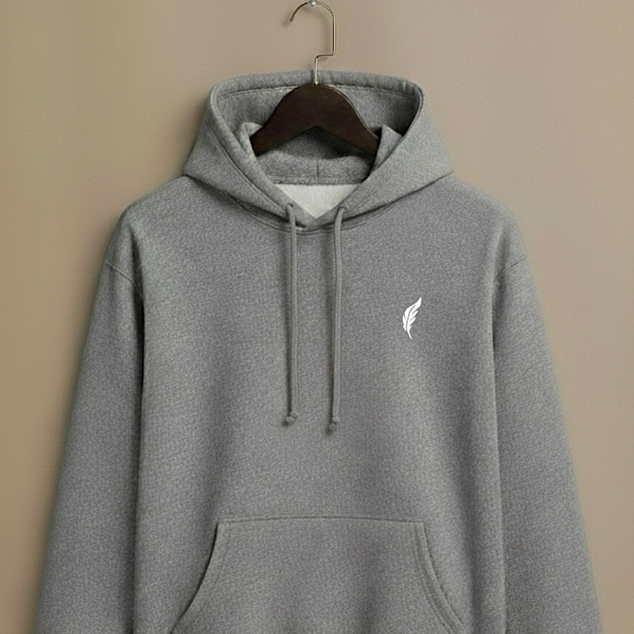هودي رمادي بسيط ومريح، بقماش ناعم وجيب أمامي عملي، مثالي للاستخدام اليومي